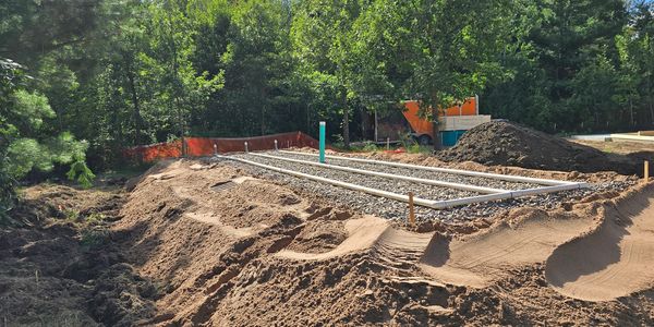 The mound septic system is going in! Each stage of the process is inspected to guarantee safety and performance. Here’s a behind-the-scenes look at the perforated pipes before they’re buried and out of sight.