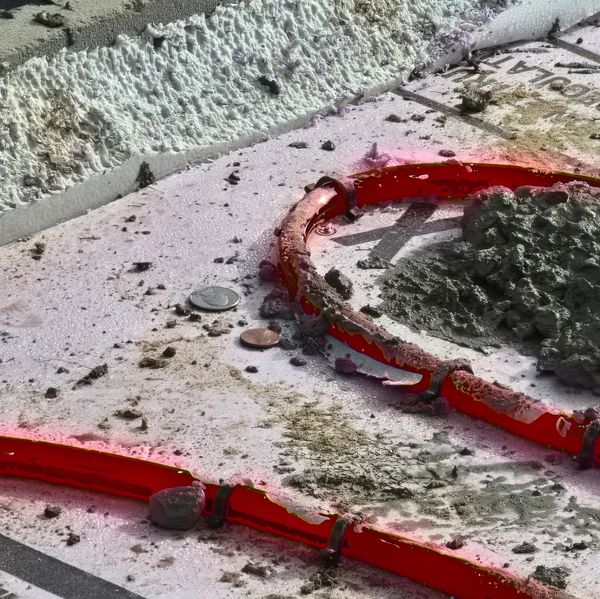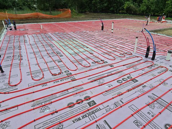 Radiant in-floor heat has been installed for the home, bringing steady, comfortable warmth underfoot. It’s efficient, effective, and one of the best ways to take the edge off our Minnesota winters. The red pipes are the hot water lines laid over pink foam insulation so the heat travels to you.